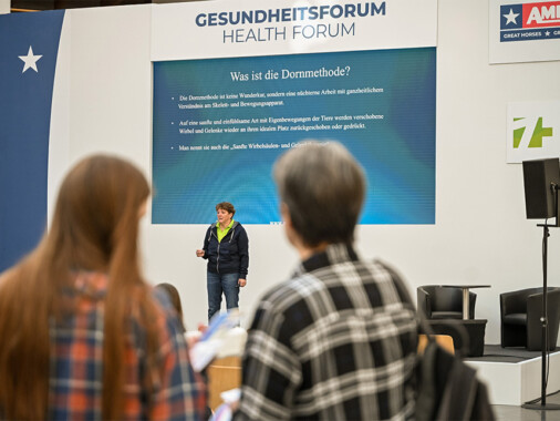 Im Rahmen des Gesundheitsforums im Foyer West präsentieren Ihnen namhafte Referenten ein breites Spektrum an erstklassigen Vorträgen sowie praktischen Workshops zu den Themen Pferdeernährung, -gesundheit & -ausbildung. Sie haben die Möglichkeit, Fragen zu stellen und die Referierenden für einen intensiven Austausch an den Ständen zu treffen.