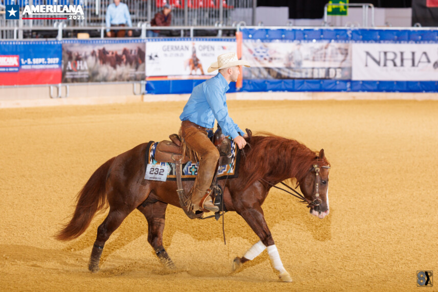 Der zweite Tag der AMERICANA 2025 stand zunächst ganz im Zeichen der Reined Cowhorse. Hier wurden die Go rounds in der Reined Work für das ERCHA Derby Open und Non Pro in der Reined Work durchgeführt, gefolgt von der Herd Work im ERCHA Open und Non Pro Bridle Spectacular. Hier gingewn die Ergebnisse in der Open auch in die Nations Cup Wertung ein.