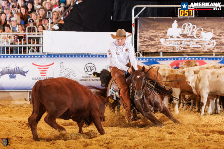 Zwölf hochkarätige Pferd-Reiter-Kombinationen trafen im Finale der Bonda Ranch European Championshio erneut aufeinander. Den European Champion Titel trug Pietro Valeri mit Starry Eyedd im Besitz von Marco Salvatori davon. Es war Valeris dritter AMERICANA Champion Titel, und der Sieg machte den Erfolg von Marco Salvatoris Rosy O’Grady Ranch komplett. Marco war am Vortag mit Highbrow Time European Champion Non Pro geworden und konnte den Wallach im Open Finale mit einer 148 auf Platz 5 reiten. Insgesamt hatte Marco Salvatori fünf Pferde in diesem Finale, darunter den Vorlaufsbesten Stevie Reyvenge (Stevie Rey Von x Pettys Dual Pep) unter Martina Annovazzi, der mit einer 145 auf Platz 8 kam.