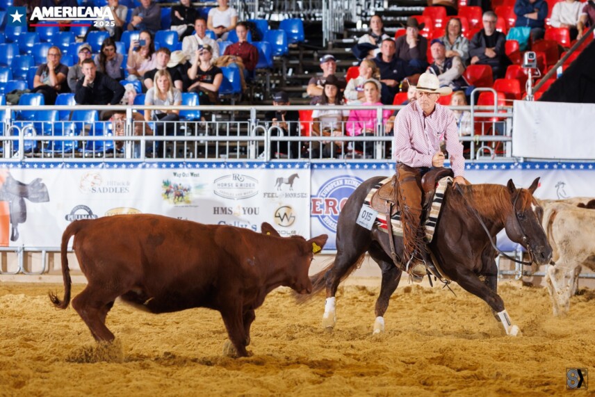 Reserve Champion wurde Rosana Bembom (NED) mit dem 12-jährigen Smoking Spook (Smart Spook x Sweet Huntress), die mit einer 146 aus der Arena kam. Die beiden hatten den Go round angeführt und waren auf dieser AMERICANA bereits Masters Cutting Non Pro Reserve Champion. Platz 3 ging an Sasha Schwind auf Counting Cats, die eine 145 scorte.